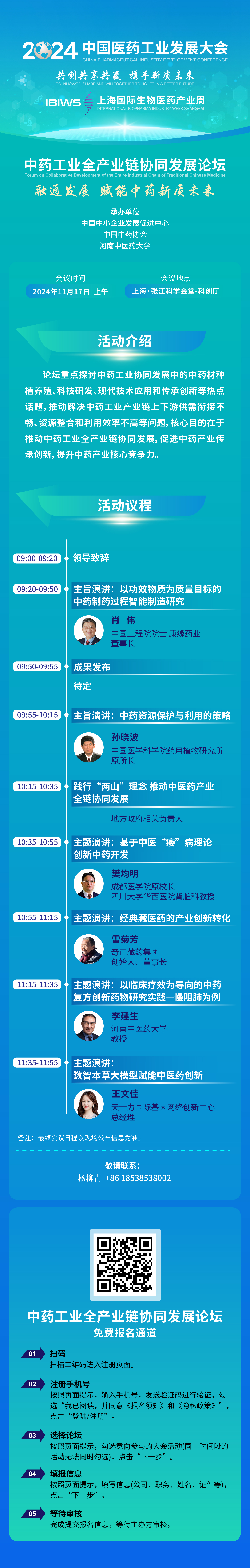 在2024中國醫(yī)藥工業(yè)發(fā)展大會期間,中國中小企業(yè)發(fā)展促進(jìn)中心聯(lián)合中國中藥協(xié)會、河南中醫(yī)藥大學(xué),將于11月17日上午組織舉辦“中藥工業(yè)全產(chǎn)業(yè)鏈協(xié)同發(fā)展論壇”。本次論壇以“融通發(fā)展,賦能中藥新質(zhì)未來”為主題,重點(diǎn)探討中藥工業(yè)協(xié)同發(fā)展中的中藥材種植養(yǎng)殖、科技研發(fā)、現(xiàn)代技術(shù)應(yīng)用和傳承創(chuàng)新等熱點(diǎn)話題,推動解決中藥工業(yè)產(chǎn)業(yè)鏈上下游供需銜接不暢、資源整合和利用效率不高等問題,核心目的在于推動中藥工業(yè)全產(chǎn)業(yè)鏈協(xié)同發(fā)展,促進(jìn)中藥產(chǎn)業(yè)傳承創(chuàng)新,提升中藥產(chǎn)業(yè)核心競爭力。