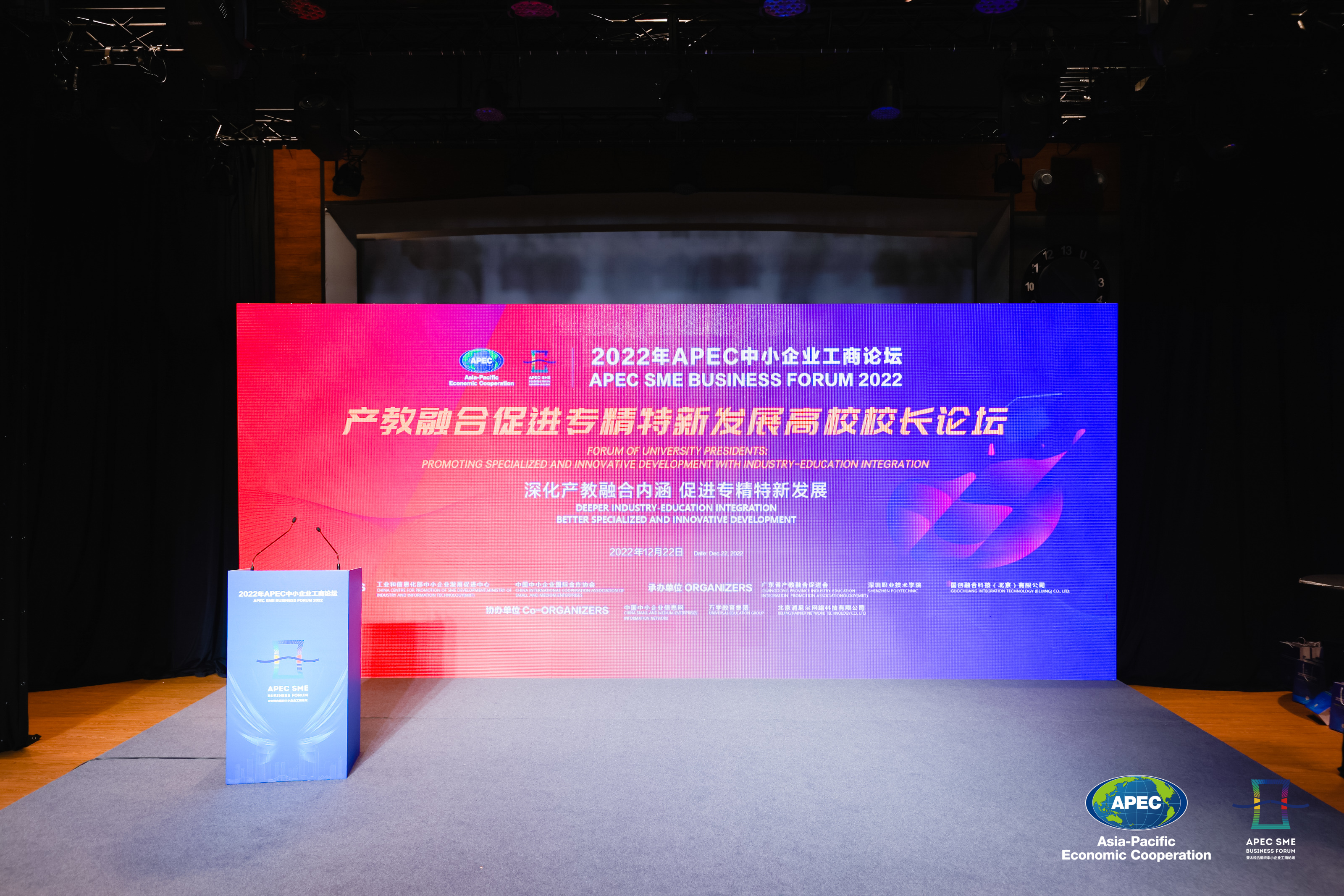 12月22日下午,2022年亞太經(jīng)合組織(APEC)中小企業(yè)工商論壇—產(chǎn)教融合促進專精特新發(fā)展高校校長論壇(以下簡稱校長論壇)在京舉行。論壇由工業(yè)和信息化部中小企業(yè)發(fā)展促進中心、中國中小企業(yè)國際合作協(xié)會共同主辦,廣東省產(chǎn)教融合促進會、深圳職業(yè)技術(shù)學(xué)院、國創(chuàng)融合科技(北京)有限公司承辦,中國中小企業(yè)信息網(wǎng)、萬學(xué)教育科技集團、北京潤尼爾網(wǎng)絡(luò)科技有限公司協(xié)辦。