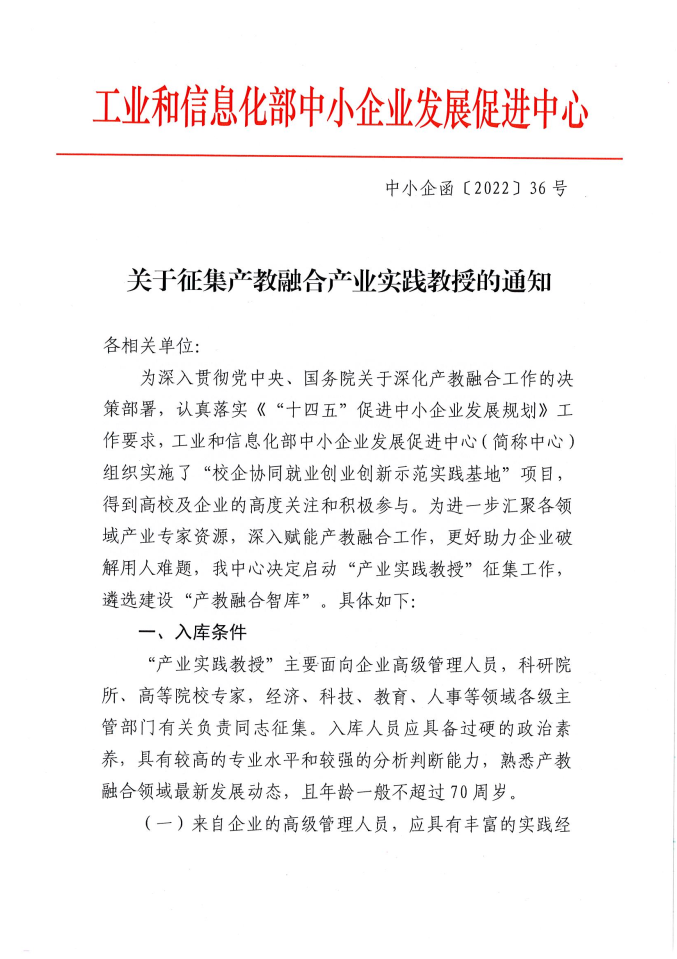 關(guān)于征集產(chǎn)教融合產(chǎn)業(yè)實踐教授的通知